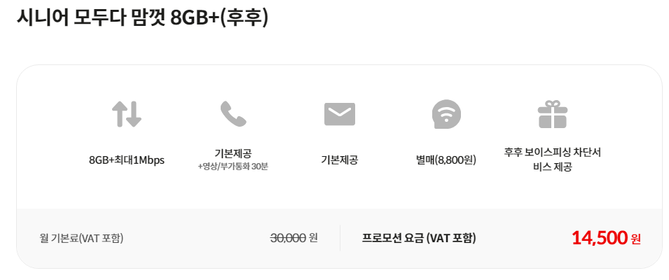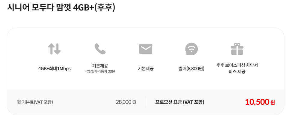 시니어 요금제는 65세 이상 어르신들을 위한 요금제 입니다.