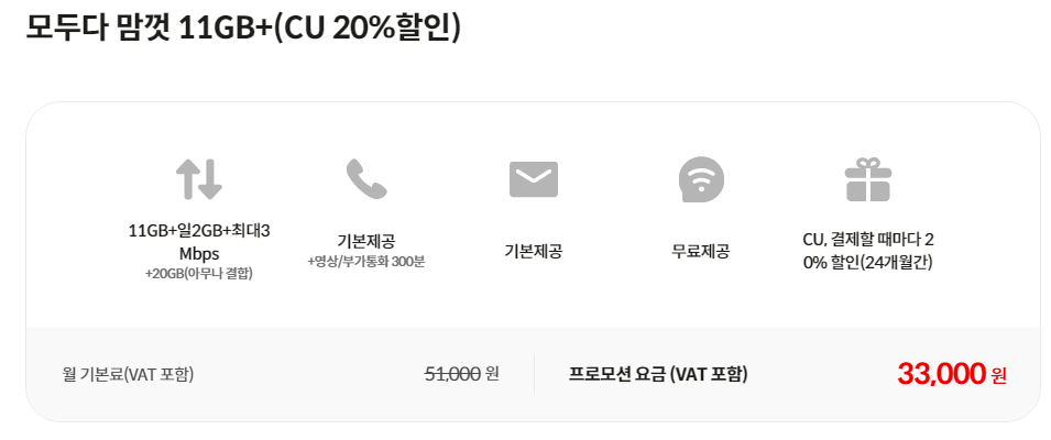 cu 할인 요금제는 편의점 cu에서 결제할때마다 20% 할인해주는 요금제 입니다.