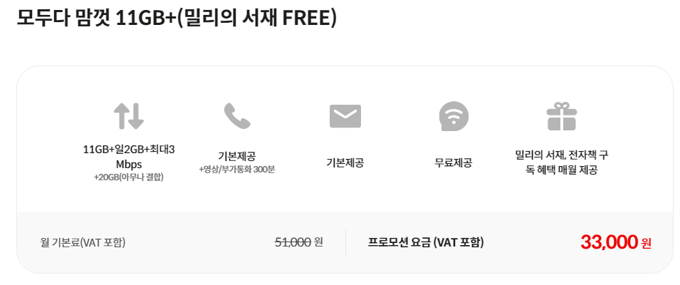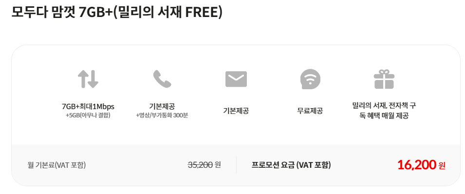 kt 알뜰폰 밀리의서재 요금제