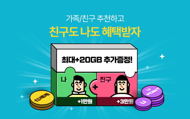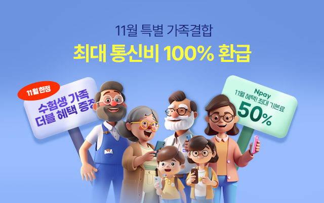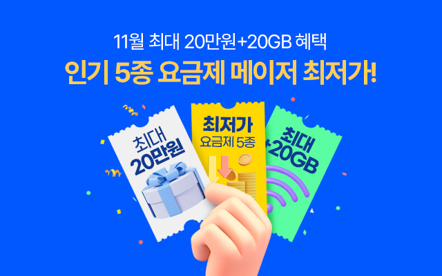 LG 알뜰폰 11월 이벤트로는 최대 20만원 + 20GB 혜택과 가족결합 최대 통신비 100% 환급, 가족/친구 추천하고 친구와 함께 혜택 등 다양한 이벤트가 있습니다. 가입하실때 이벤트 꼭 확인하시고 혜택 받아보세요.